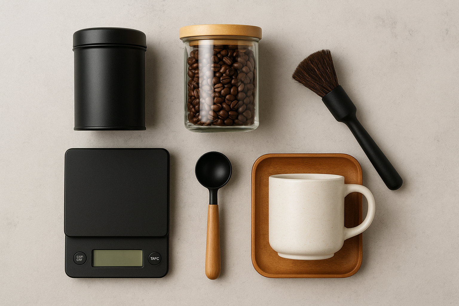 커피용품은 단순히 장식이 아니라, 커피의 품질과 즐거움을 높여주는 보조 장치입니다. 추출기구가 같더라도 관리용품과 보관 상태에 따라 결과물의 향미가 크게 달라집니다.